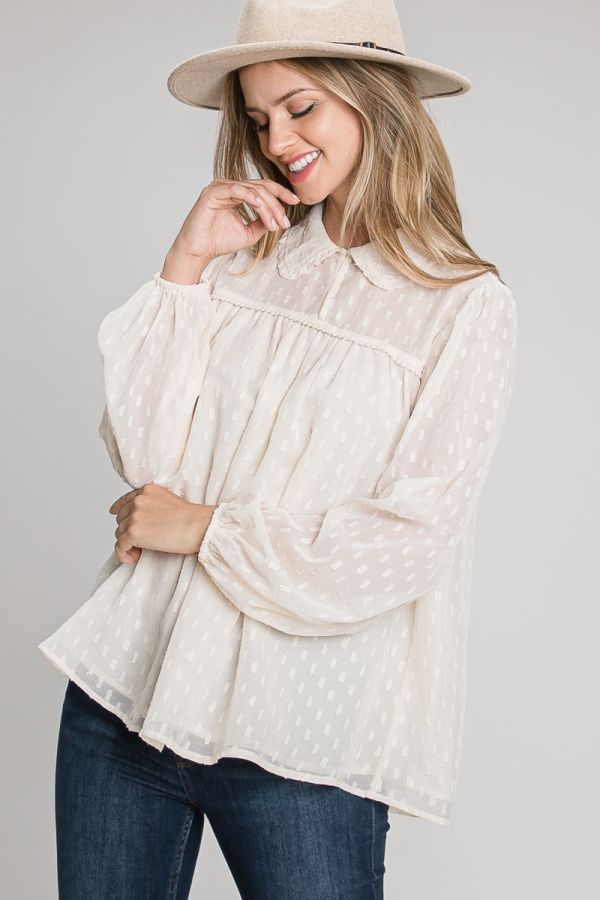 "Get ready to add a touch of elegance to your wardrobe with our Allie Rose Champagne blouse. The gold accents adds a touch of glamour, while the lining ensures a comfortable fit. Perfect for a night out or a fancy event."