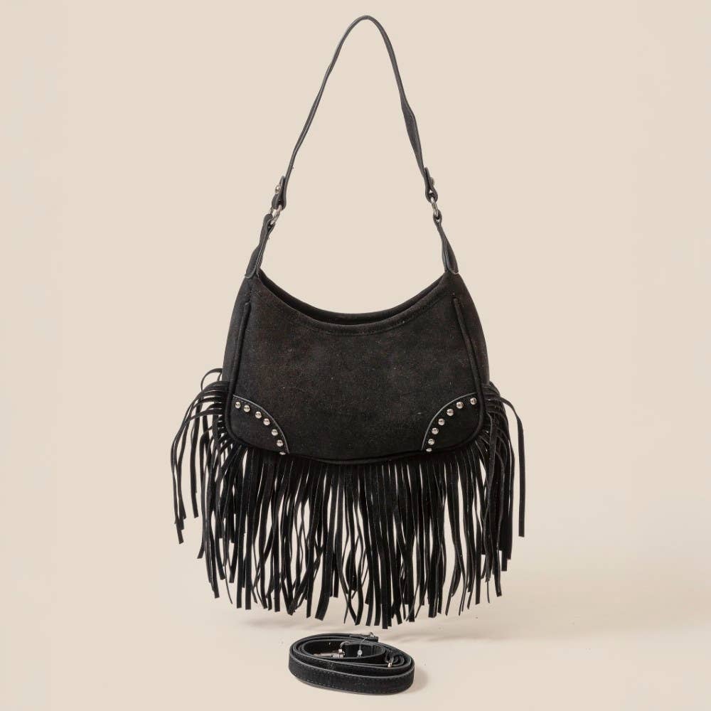 Faux Suede Fringe Belt Decor Shoulder Bag