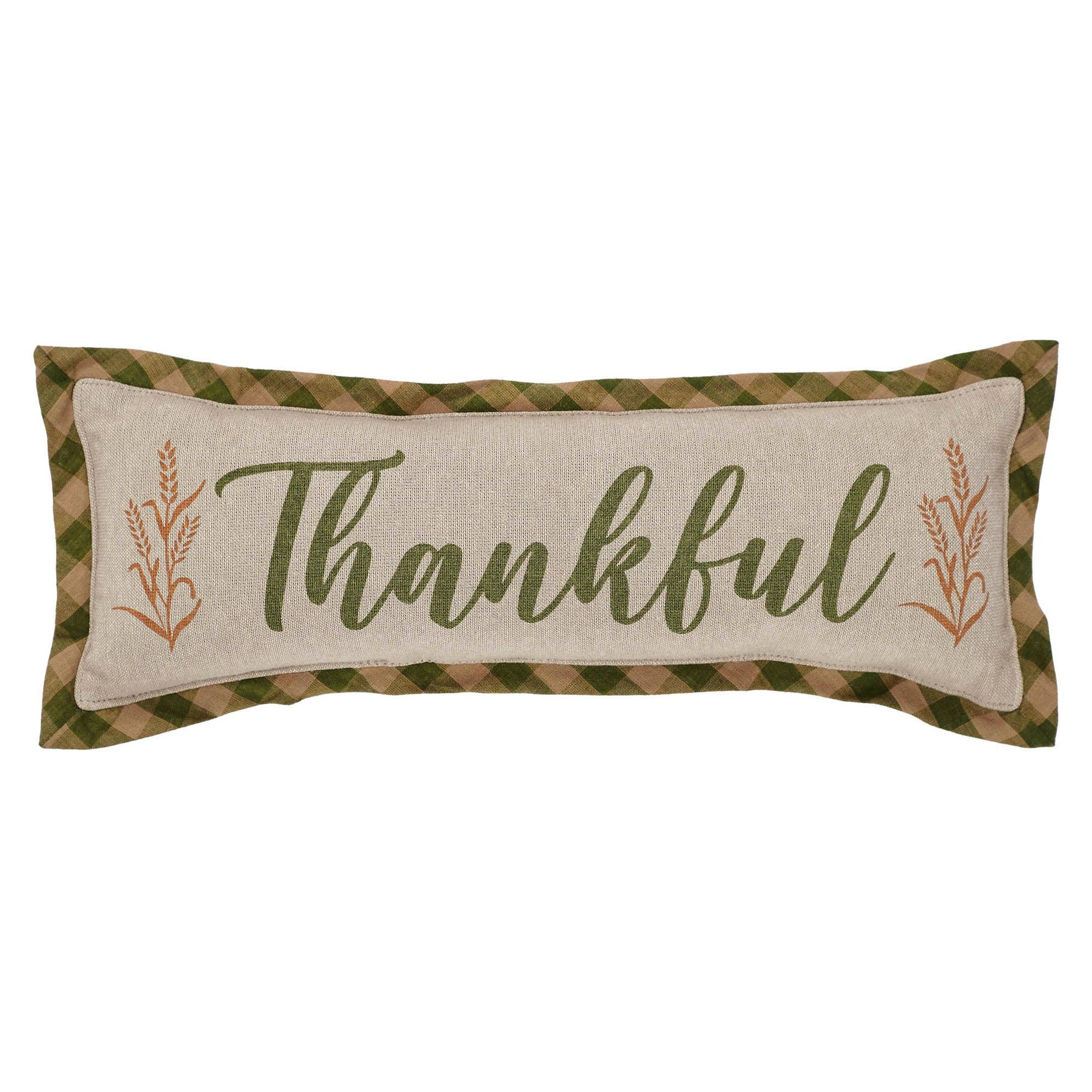 Add a touch of cuteness to your fall decor with the Harvest Blessings Thankful Pillow. Measuring 5x15 inches, this pillow is perfect for adding a cozy and playful accent to your living room or bedroom. Show your gratitude with this adorable and unique pillow.