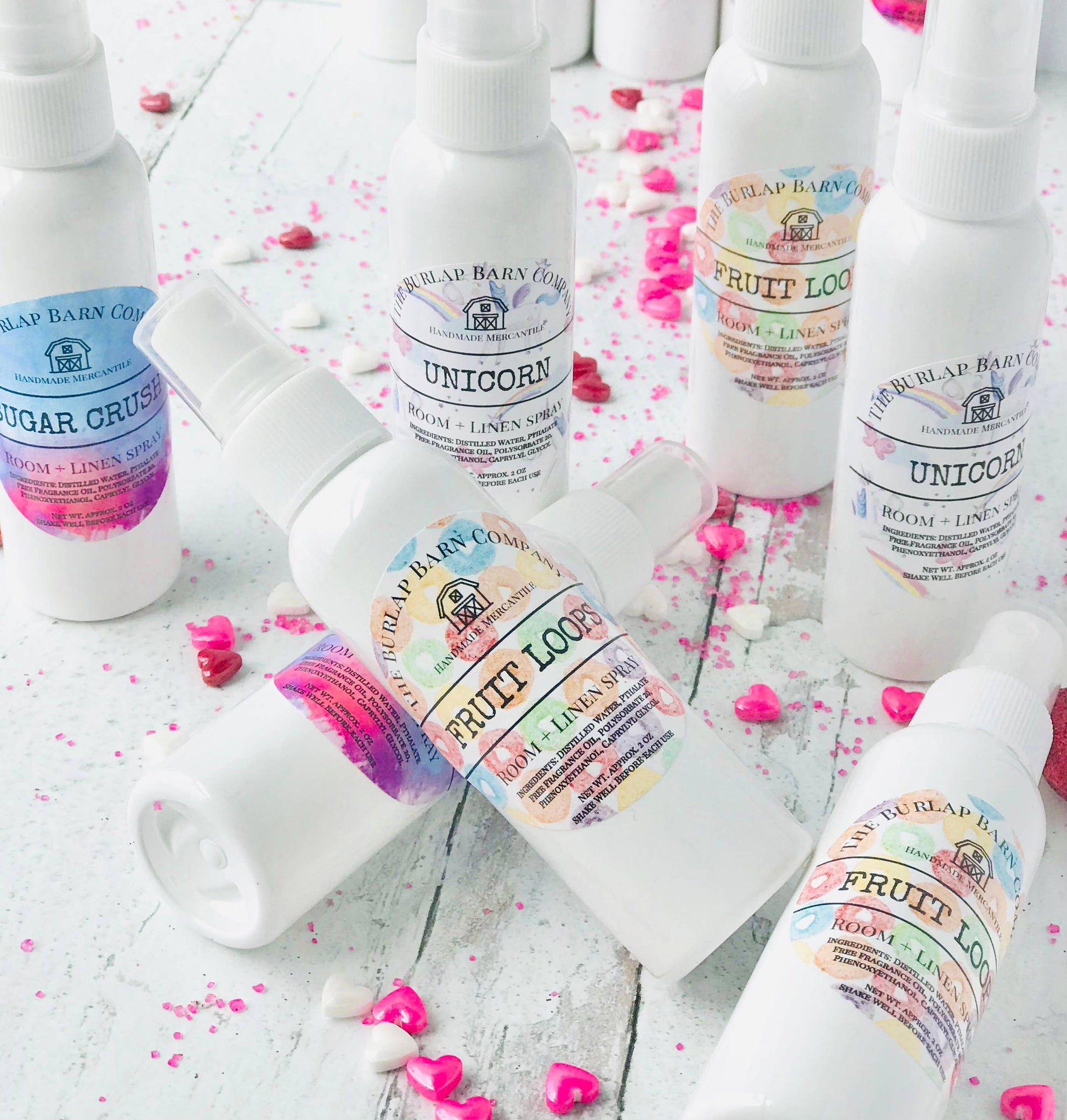 Shop our new Room & Linen Sprays. Great for for gifting to the kiddos or kid at heart. These room and linen sprays are perfect for freshening up a room, spritzing linens at bedtime, or just adding a little sweetness to the air. I love that these sprays are extremely effective without the use of aerosols, are phthalate-free, non-toxic, and kid-friendly. 2 oz bottles Fruit Loops- nostalgic kids cereal and has notes of lemon, lime, and vanilla sugar.