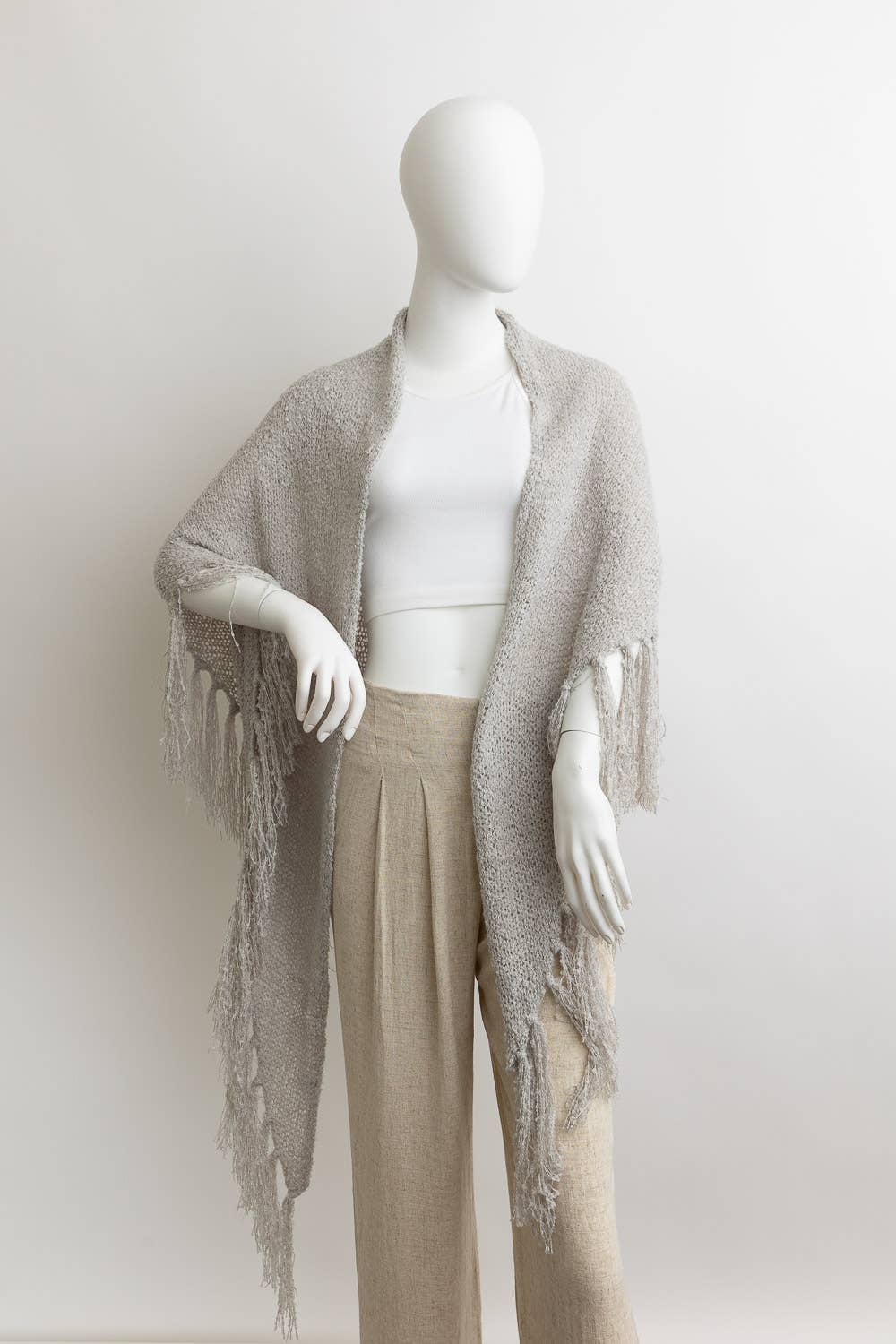 Discover the Lightweight Knit Wrap with Tassels—a versatile marvel that redefines transitional fashion. Crafted with a delicate knit, this wrap offers the perfect balance of comfort and lightness, making it an all-season essential. But this piece is not just about function; it's a stylistic statement. The tassels add a bohemian flair that dances with every step, transforming even the most basic outfits into something special. Envision it layered over a summer dress for a breezy evening look or bundled around a coat for extra warmth and style. This is not just another item; it's a fashion-forward choice that will set your inventory apart.