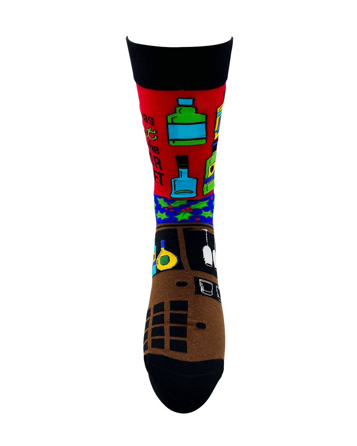Don't let your Christmas spirit be confined to just the season! These men's socks proclaim that your festive mood is always on tap, with a quirky design featuring a playful message and a liquor cabinet. With a perfect fit for sizes 7-12, these socks are sure to bring a smile to your face (and your feet) every time you wear them!
