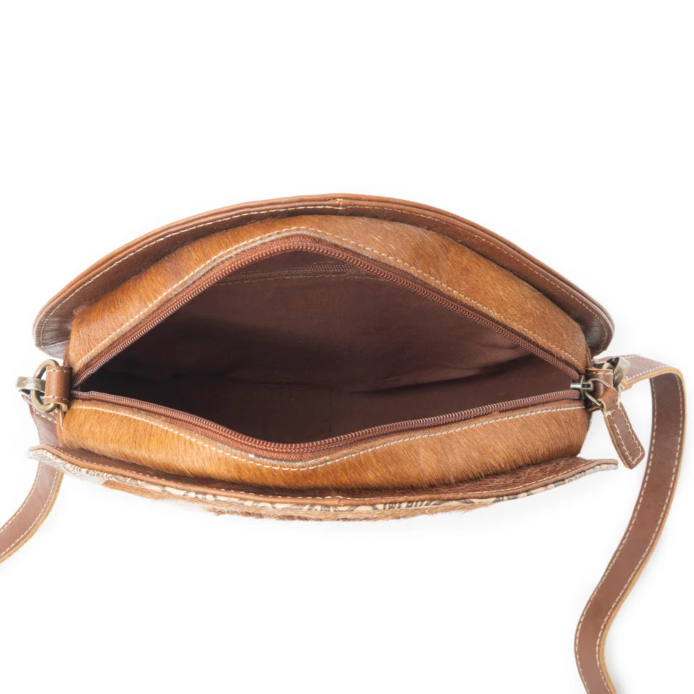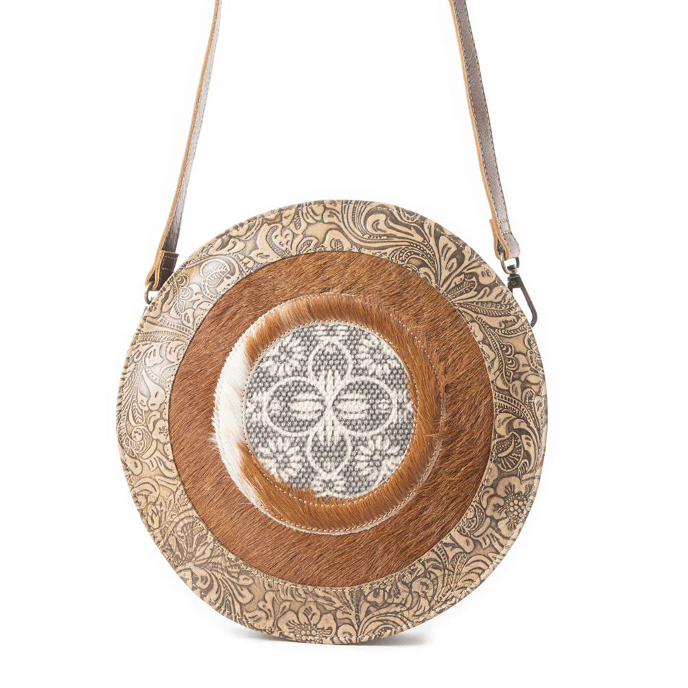 Get ready to catch everyone's eye with the boho vibes of the Myra Bag Round Bag. Made of leather, this 10.5 inch wide, 10.5 inch high, and 2.25 inch deep bag is perfect for carrying all your essentials while adding a touch of quirkiness to your outfit.
