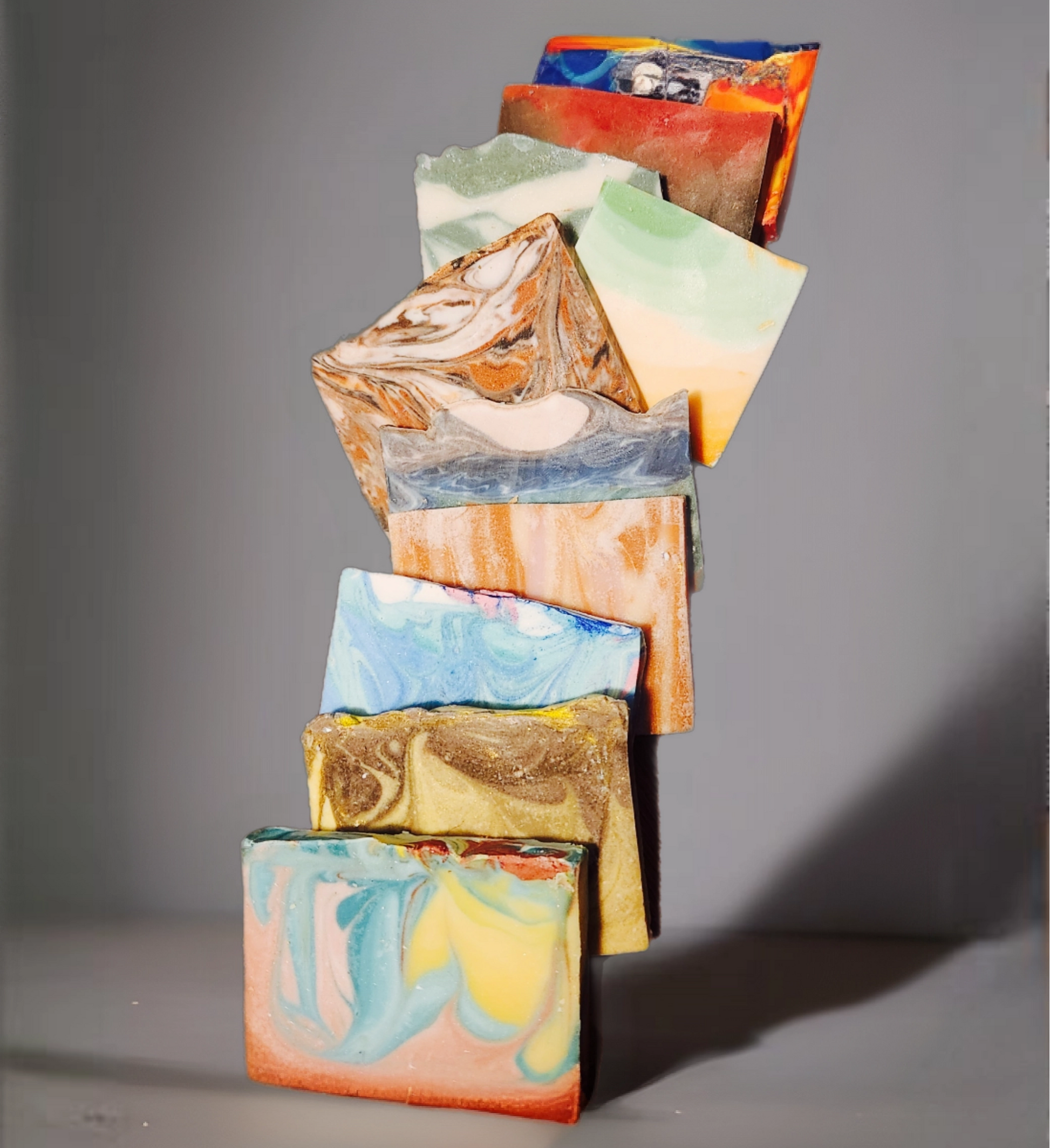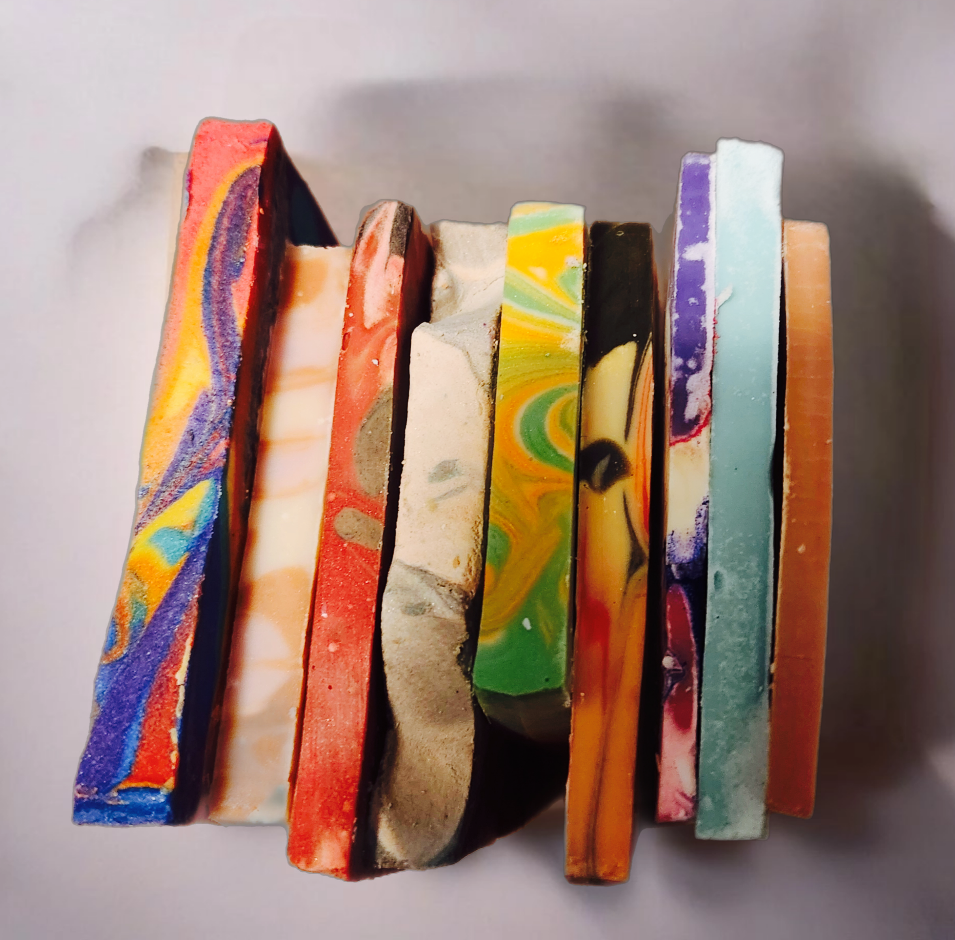 Luxurious handmade soap ends made with sustainable organic palm, coconut, shea butter, rice bran, or castor oils. Scented with premium blended fragrance and/or essential oils.