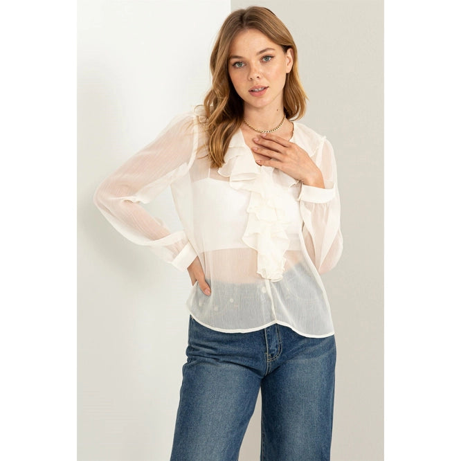 Ruffle Long Sleeve Blouse- Off White