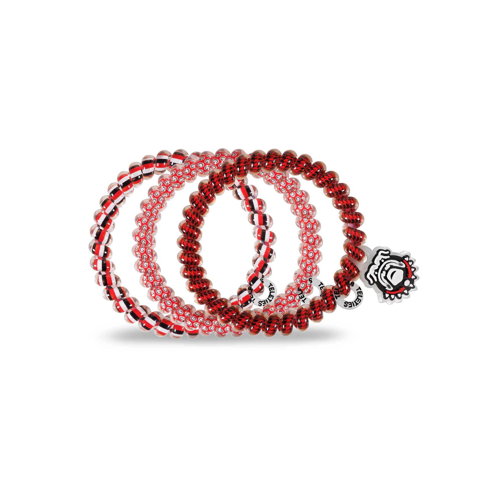 Hold your hair and enhance your collegiate style with the University of Georgia TELETIES. The strong grip, no rip hair tie that doubles as a bracelet. Strong, pretty and stylish, TELETIES are designed to withstand everyday demands while taking your look to the next level. Go Dawgs!