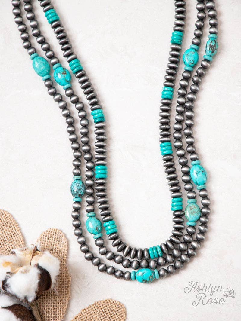 Get ready to have some fun with this Tri-Strand Silver Beaded Necklace, featuring beautiful turquoise stones! Add a pop of color to any outfit while showing off your playful side. Perfect for any occasion, this necklace is sure to bring a smile to your face.